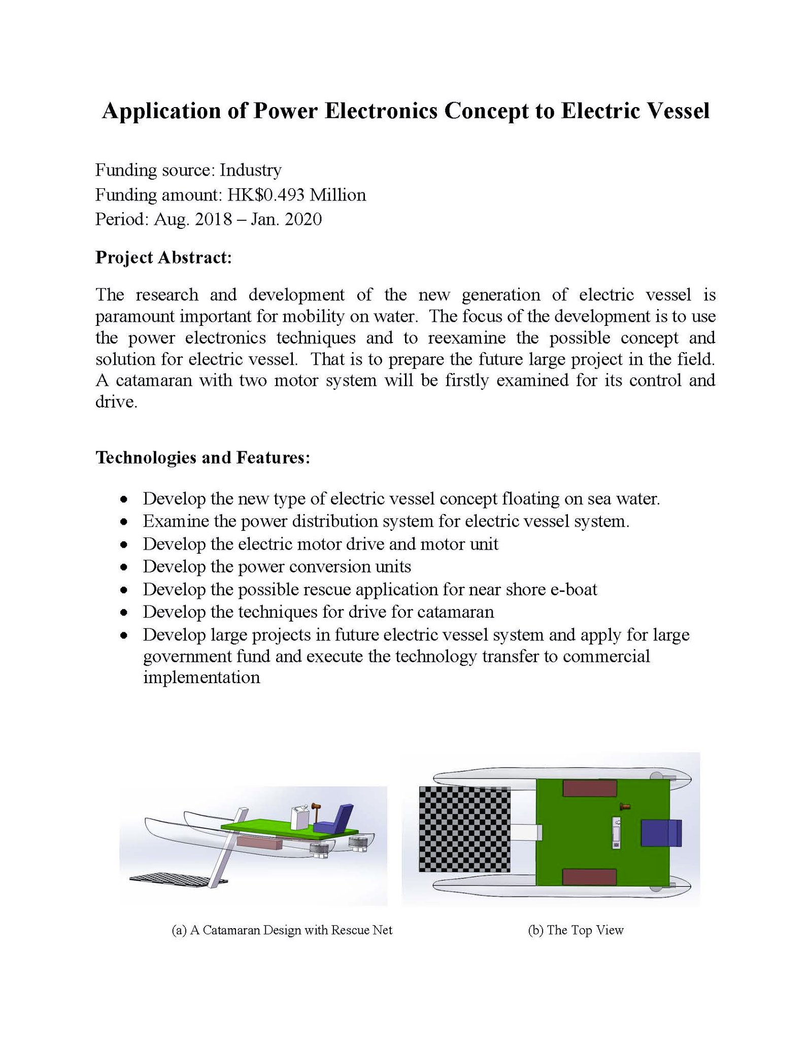 - Develop the new type of electric vessel concept floating on sea water