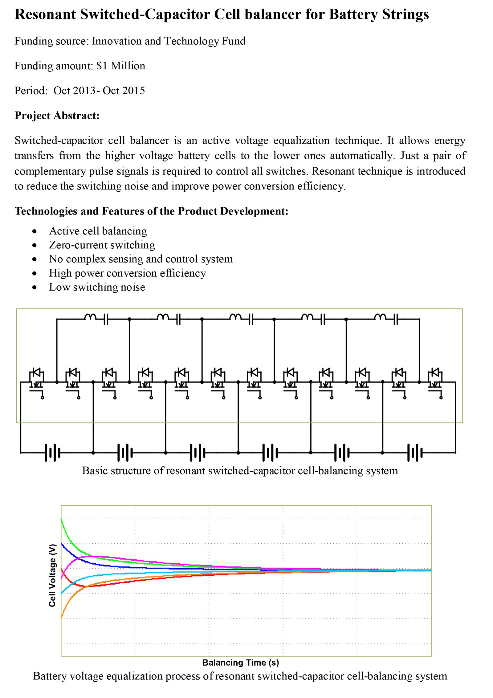 - Active balancing, simple circuit topology, low cost, fast dynamic response and high efficiency